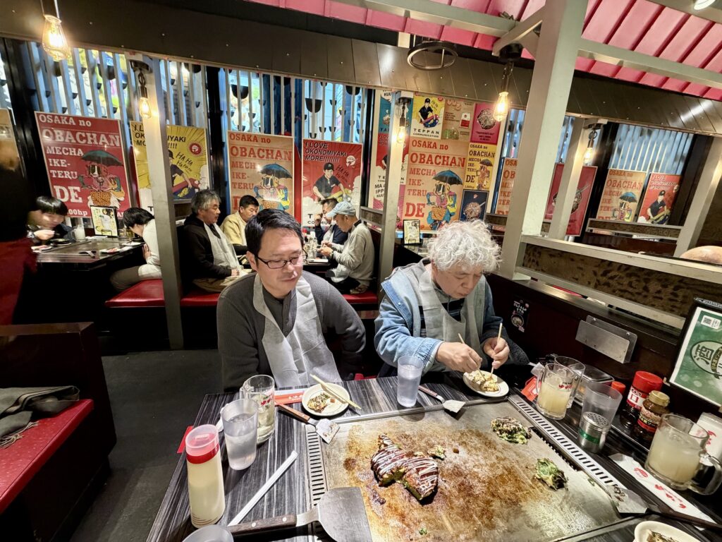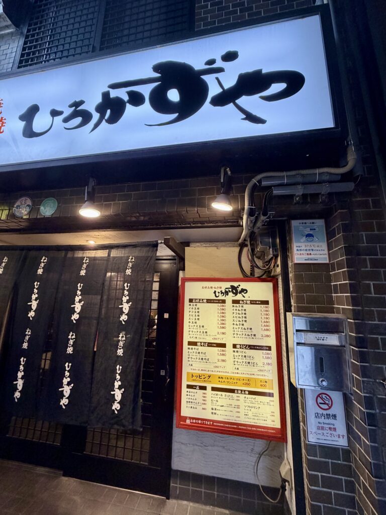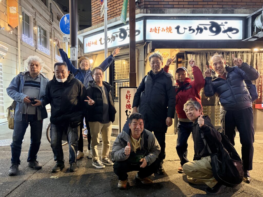 そんなことを3,000円飲み放題食べ放題の店で話していたら「近所のお好み焼き屋『ひろかずや』で写真を撮りましょう」となり、行ってみたら満席で店の前で写真だけ撮りました。